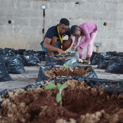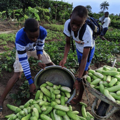 Auf eigenem Land sowie auf gepachteten Flächen außerhalb der Mauern des Kinderzentrums werden unter anderem Gurken, Yams, Karotten und Tomaten angebaut. Die Ernte wird direkt in den täglichen Mahlzeiten verwendet. Gleichzeitig lernen die Kinder den Anbau und die Pflege von Nutzpflanzen.